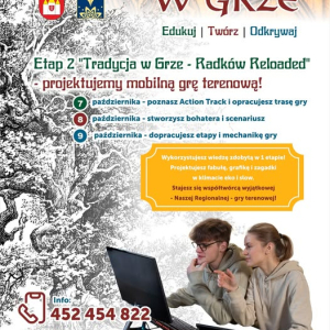 Dzięki zdobytej wcześniej wiedzy powstanie fabuła, grafika i zagadki, które wspólnie złożą się na wyjątkową, regionalną grę terenową dotyczącej naszej Gminy Radków.