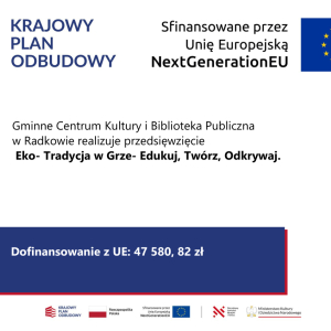 Projekt realizowany jest w ramach Krajowego Planu Odbudowy i Zwiększenia Odporności Komponent: Odporność i konkurencyjność gospodarki; Inwestycja A2.5.1: Program wspierania działalności podmiotów sektora kultury i przemysłów kreatywnych na rzecz stymulowania ich rozwoju.