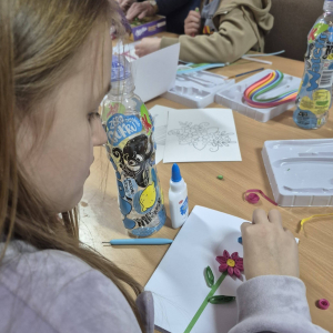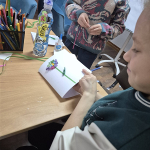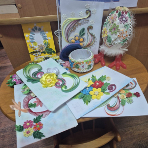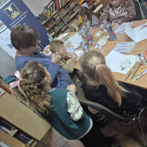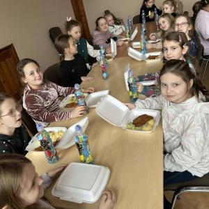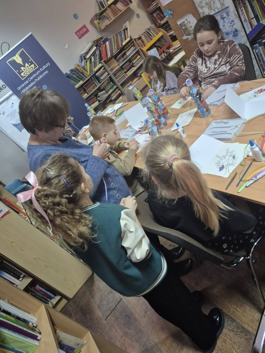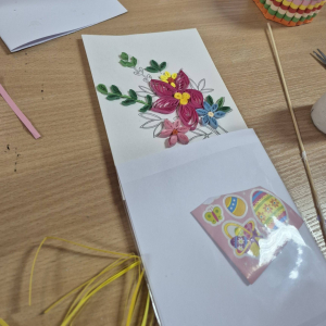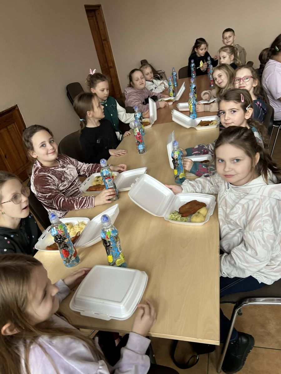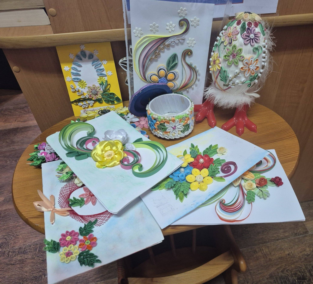 Potem zjedliśmy pyszny obiad, a następnie wzięliśmy udział w warsztatach z quillingu, który miały charakter międzypokoleniowy. Warsztaty poprowadziły doświadczone seniorki z naszej gminy: pani Marysia, pani Helenka oraz pani Halinka. Dzieci stworzyły serduszka, kartki wielkanocne, króliczki oraz sowy – bardzo im się to podobało i chętnie pracowały twórczo! Kolejno były gry i zabawy jak z dawnego podwórka , które sprawiły wszystkim mnóstwo radości- poprowadzone przez Panią Agatę i Pana Krzysztofa . To był naprawdę udany czas!