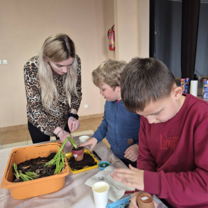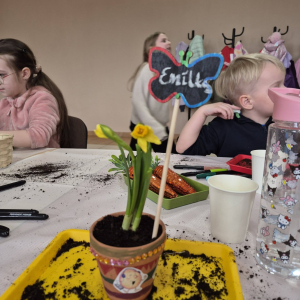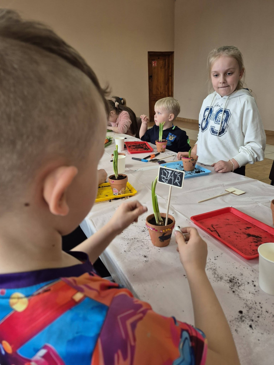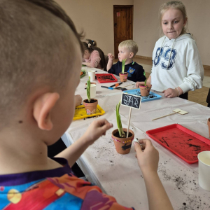 - ozdabianie doniczek i sadzenie żonkili – każdy mógł poczuć się jak mały ogrodnik